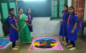 A Rangoli competition was arranged for the students. The topic for scouts was Save earth save water and for the guides was Save girl child.